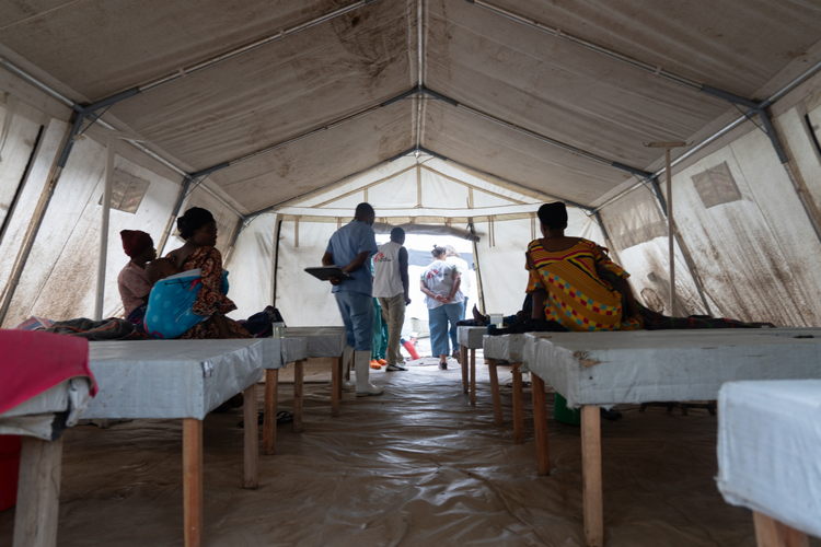 An external view of one of the medical tents in the cholera treatment unit (CTU) run by MSF in the Mugunga health centre, Goma, DRC, March 2025. Copyright: Laora Vigourt/MSF
