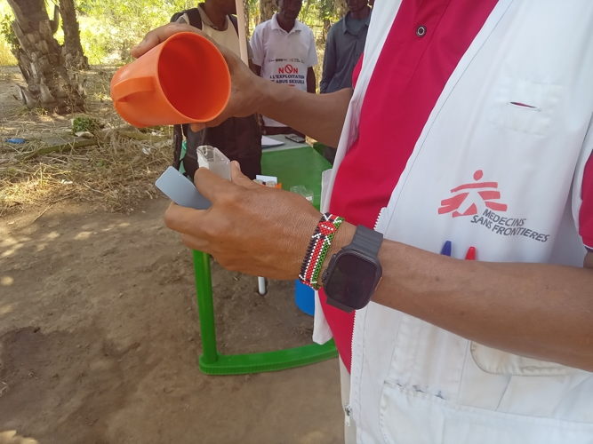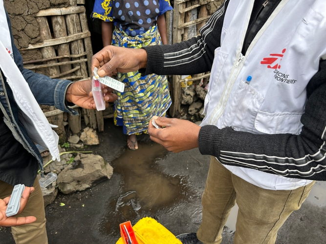 : An MSF water, hygiene and sanitation technician analysing water quality at a water chlorination point set up by MSF in the village of Katanga, Fizi territory, South Kivu, Democratic Republic of Congo. Copyright: Abdon MANENGU Mbangala/MSF